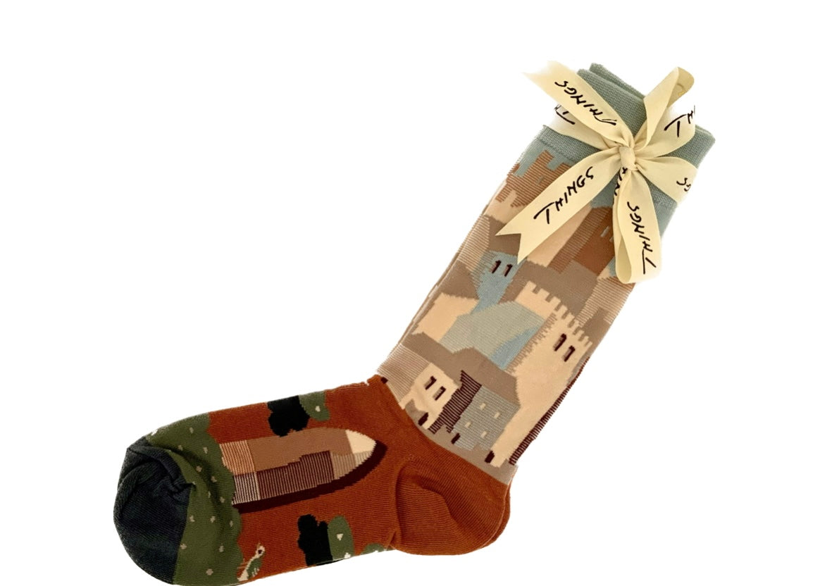 Calcetín con dibujo pueblo en tonos pastel