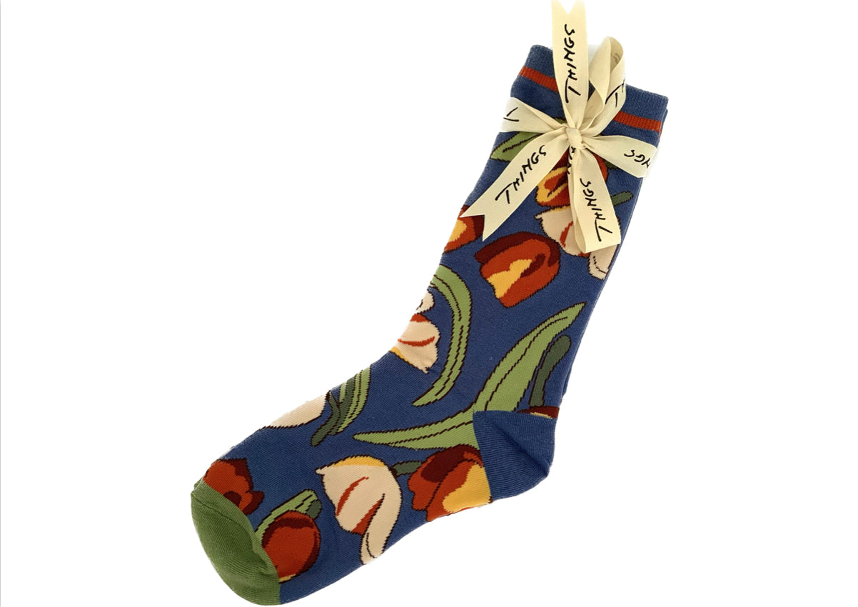 Calcetín en color zulos con motivos florales