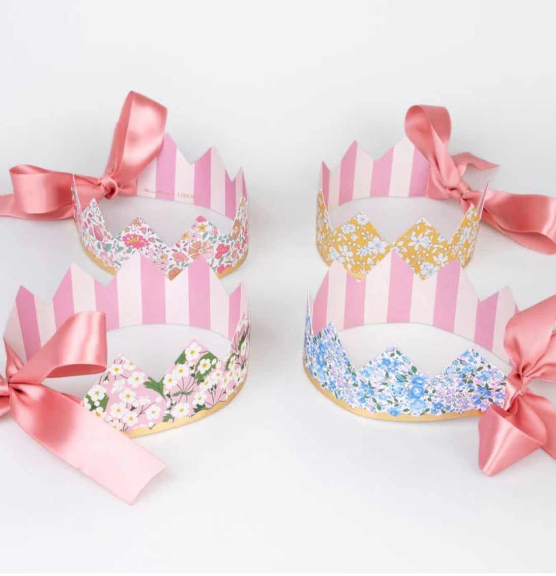 - 8 coronas con estampados florales exclusivos de Liberty, cada una con un diseño diferente.