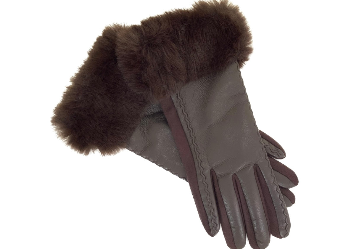 Guantes calentitos y suaves con motivo de pelo sintético en el puño en tono marrón talla M
