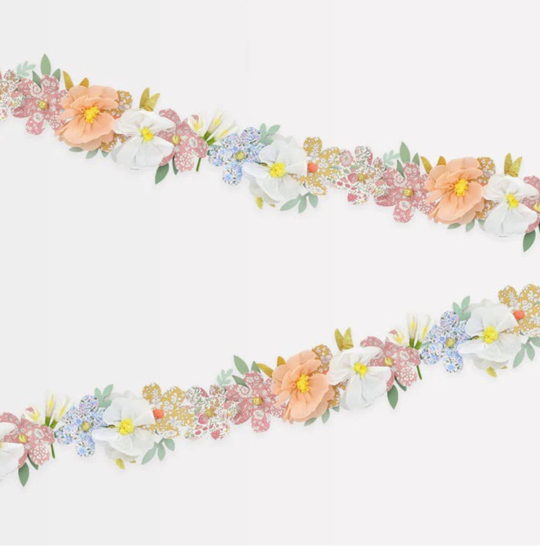 Descubre la belleza de esta exquisita guirnalda de flores de papel, creada en colaboración con Liberty London. Con diseños florales clásicos, un lujoso lazo de terciopelo menta y detalles dorados, es la decoración perfecta para baby showers, bodas, cumpleaños especiales o incluso como adorno permanente en el hogar. Su diseño tridimensional y su calidad premium garantizan un acabado sofisticado y reutilizable.