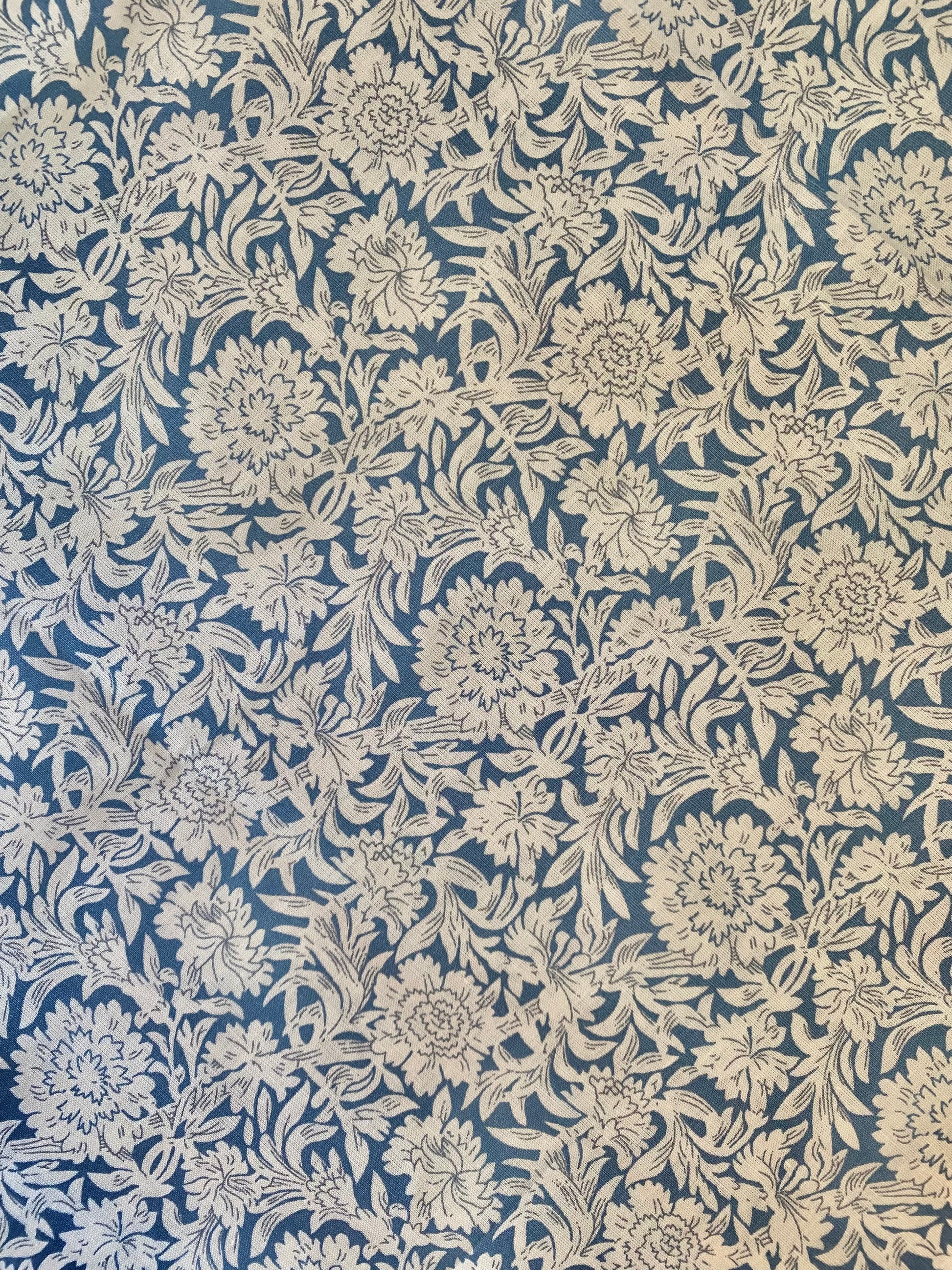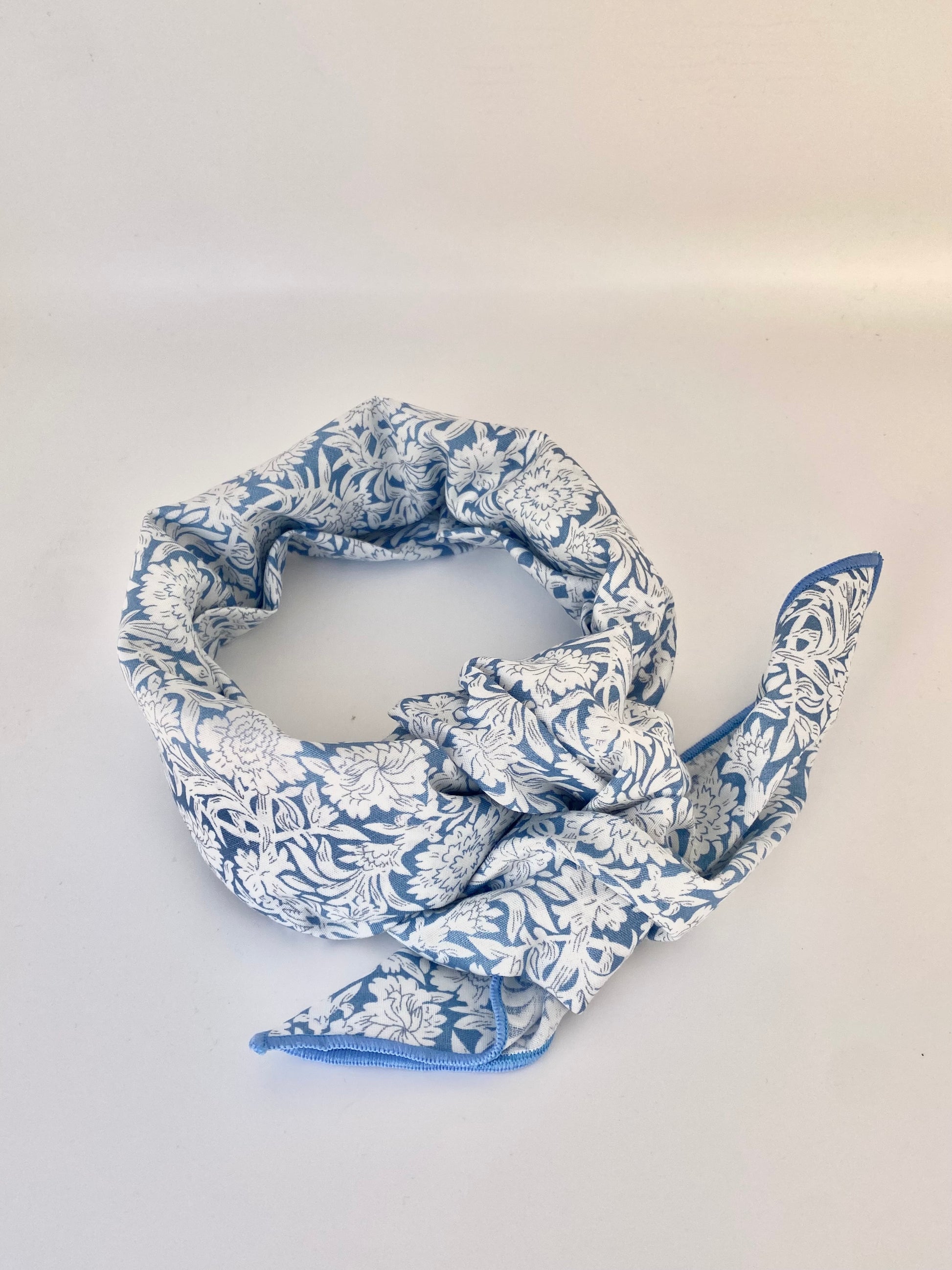 - Pañuelo de fondo azul con estampado de flores en tono blanco.