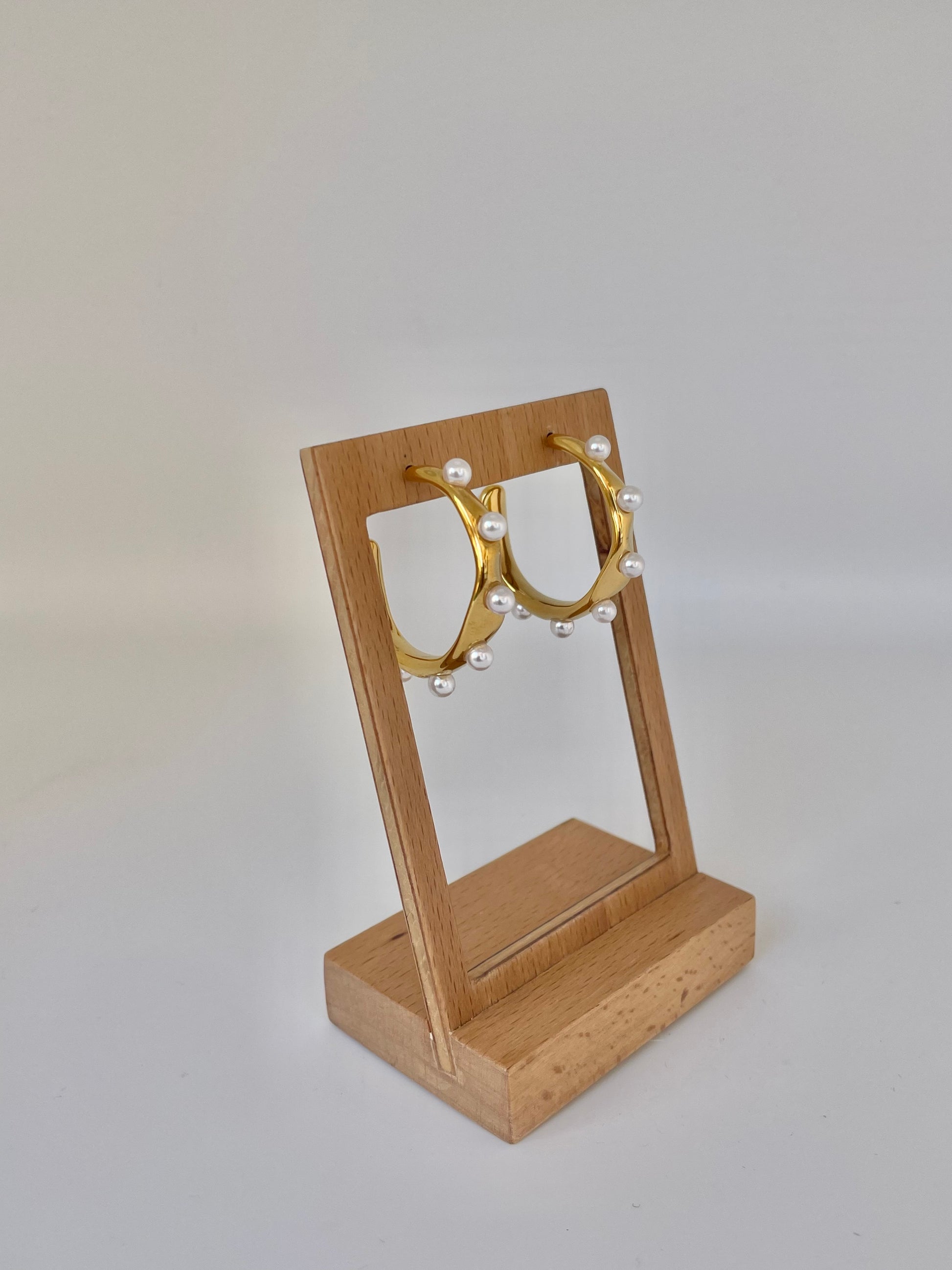 - Pendientes aros dorados con detalles de perlas.