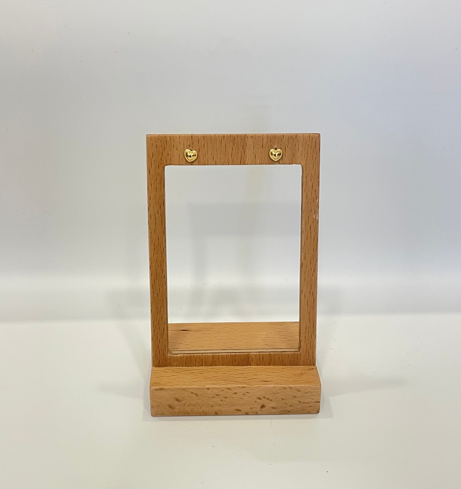 - Pendientes stud dorados en forma de corazón rodeados del un relieve.