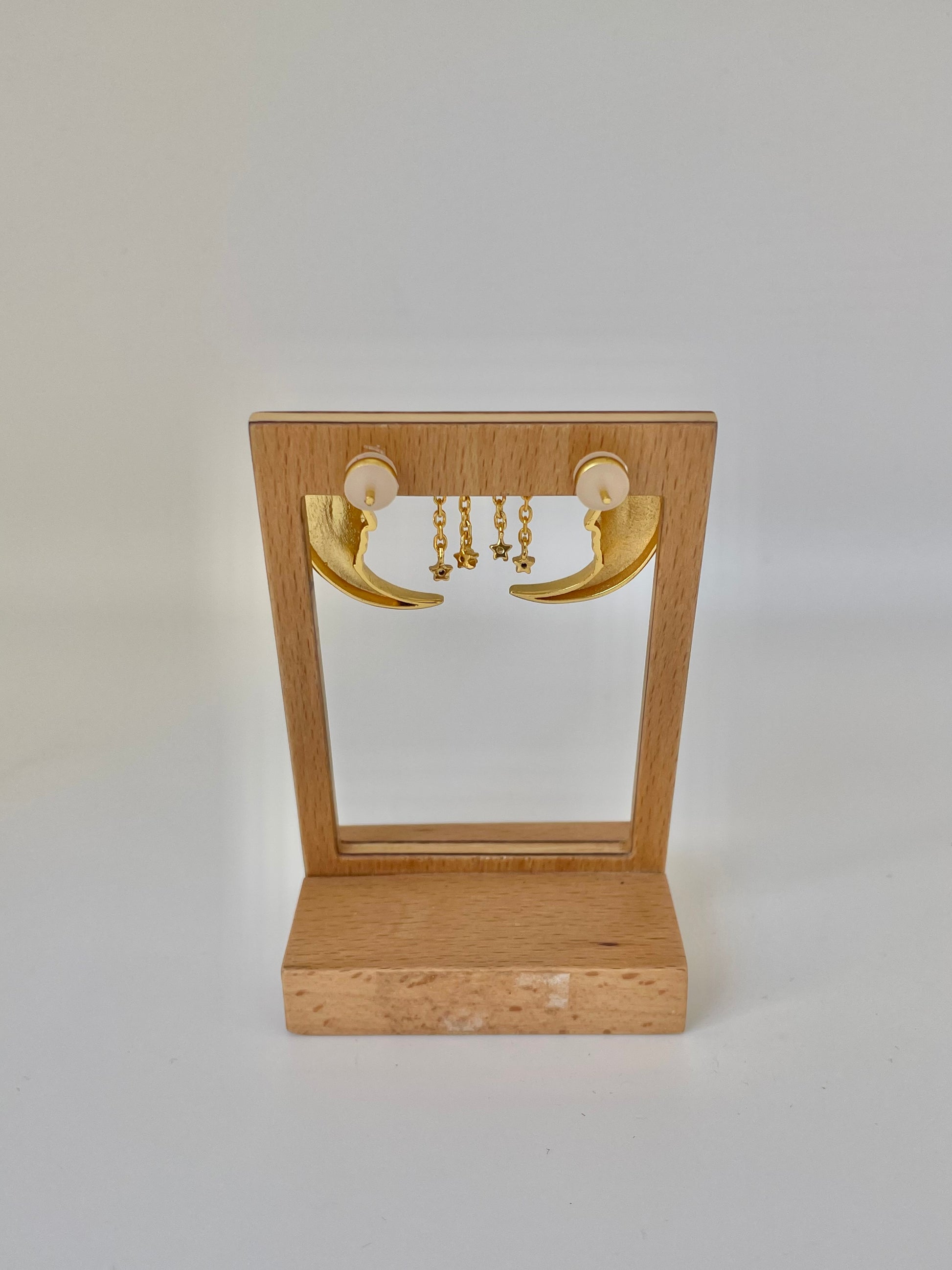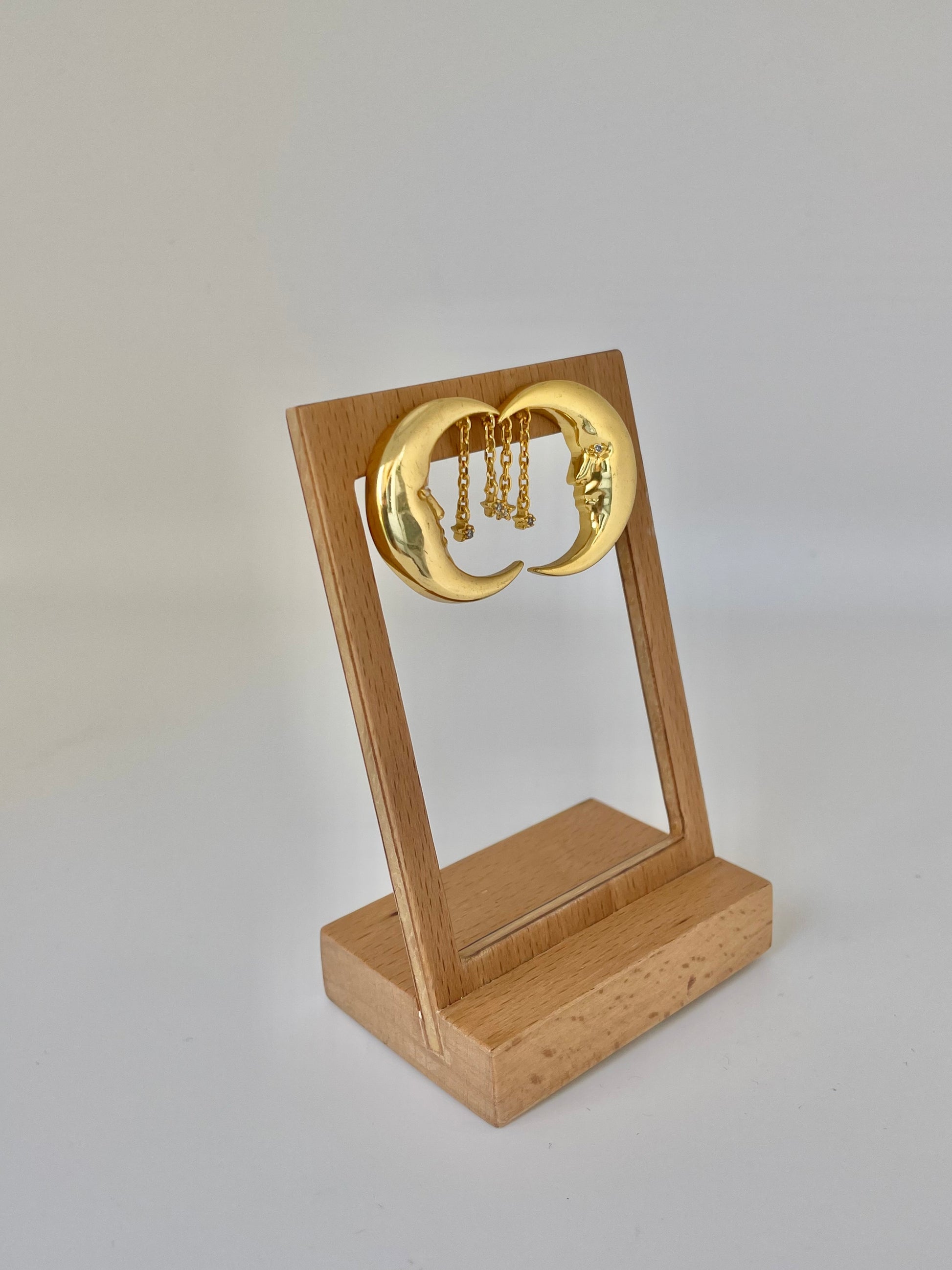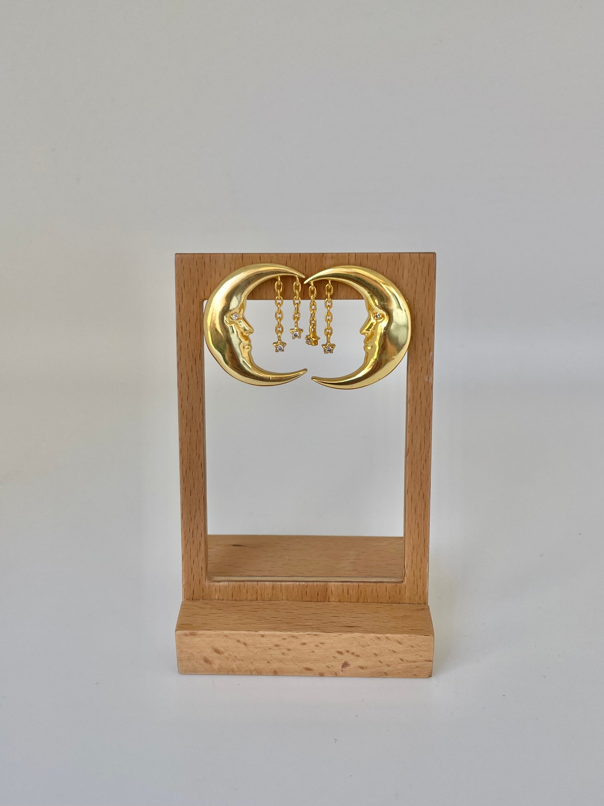- Pendientes de luna dorado con detalles de brillos.